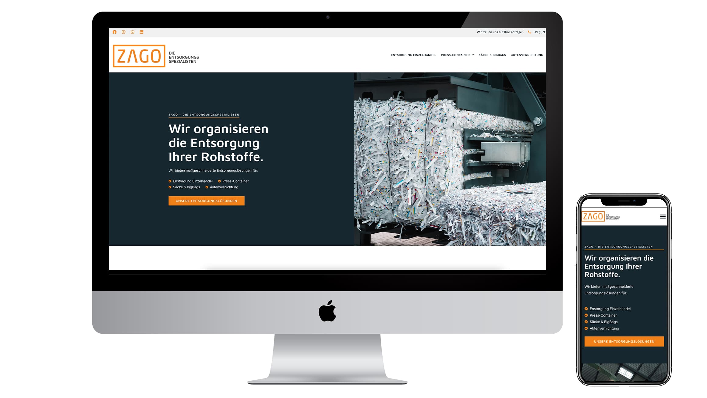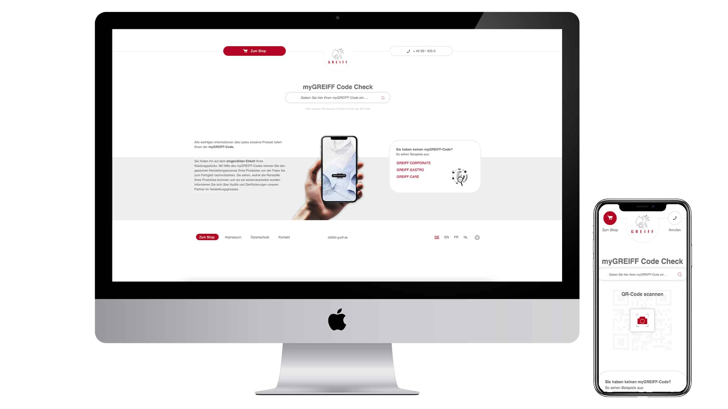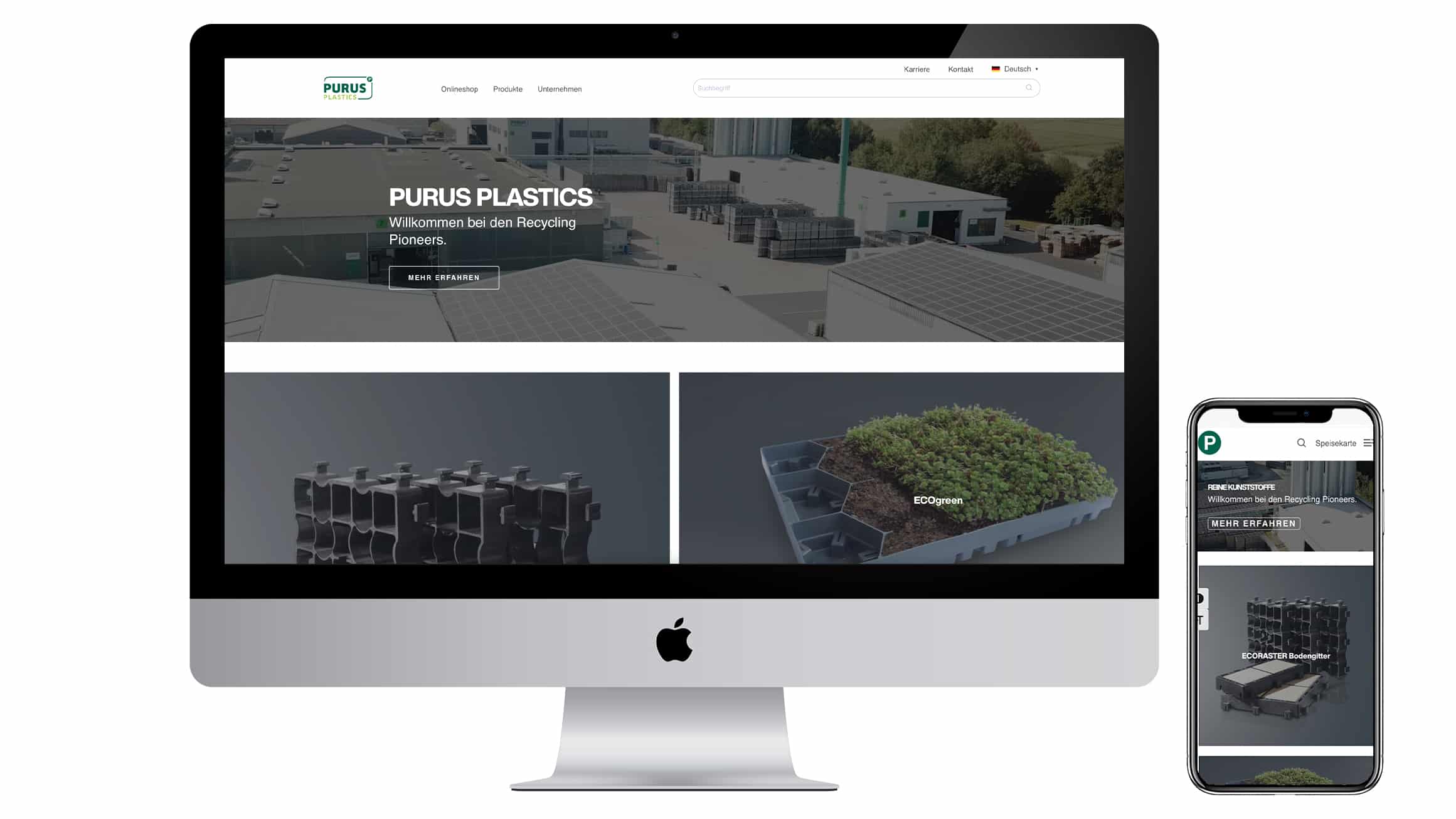 Handyplaza iMac iPhone. Das Bild zeigt die Website von Handyplaza auf dem iMac und iPhone.