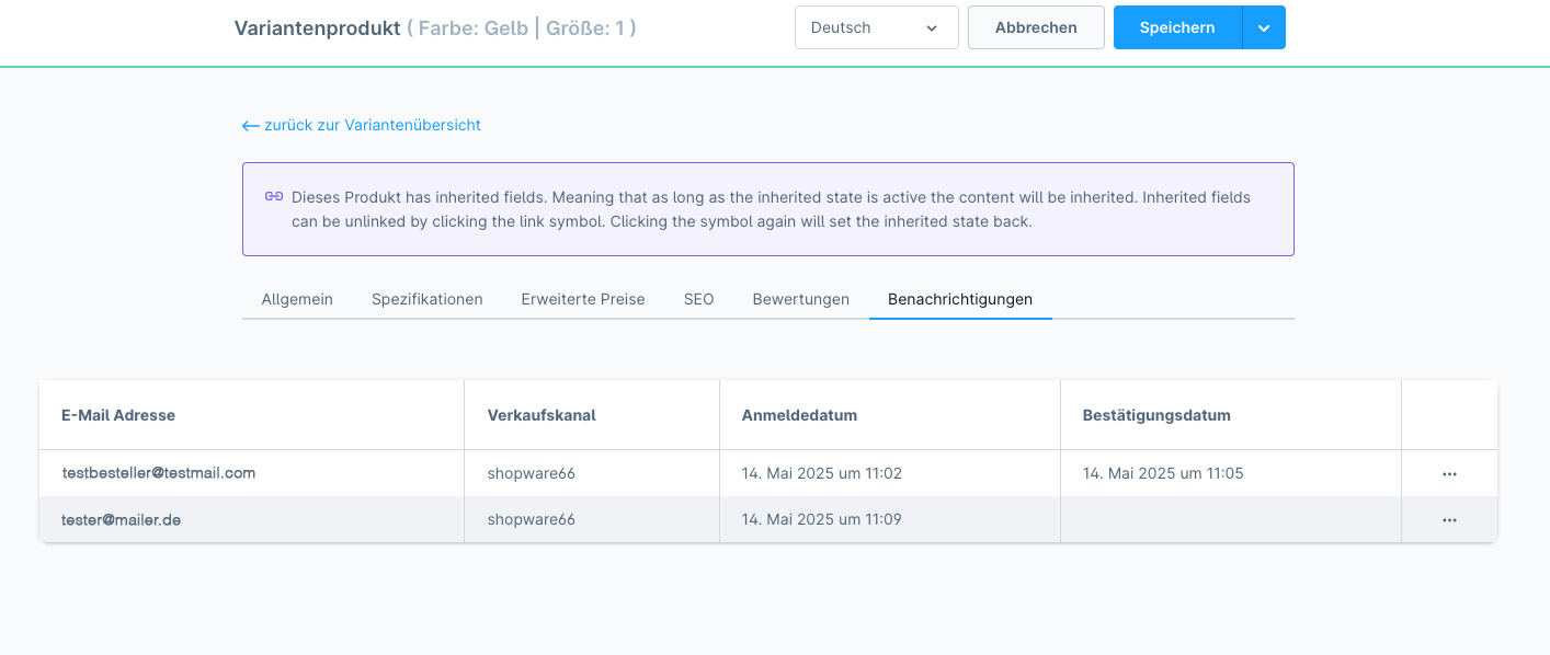 Im Shopware Backend findest du unter „Kunden -> Verfügbarkeitsbenachrichtigungen“ eine Übersicht über alle Anfragen und welcher Kunde über welches Produkt informiert werden möchte. Außerdem kannst du dort alle gespeicherten Anfragen einsehen, verwalten oder bei Bedarf löschen.