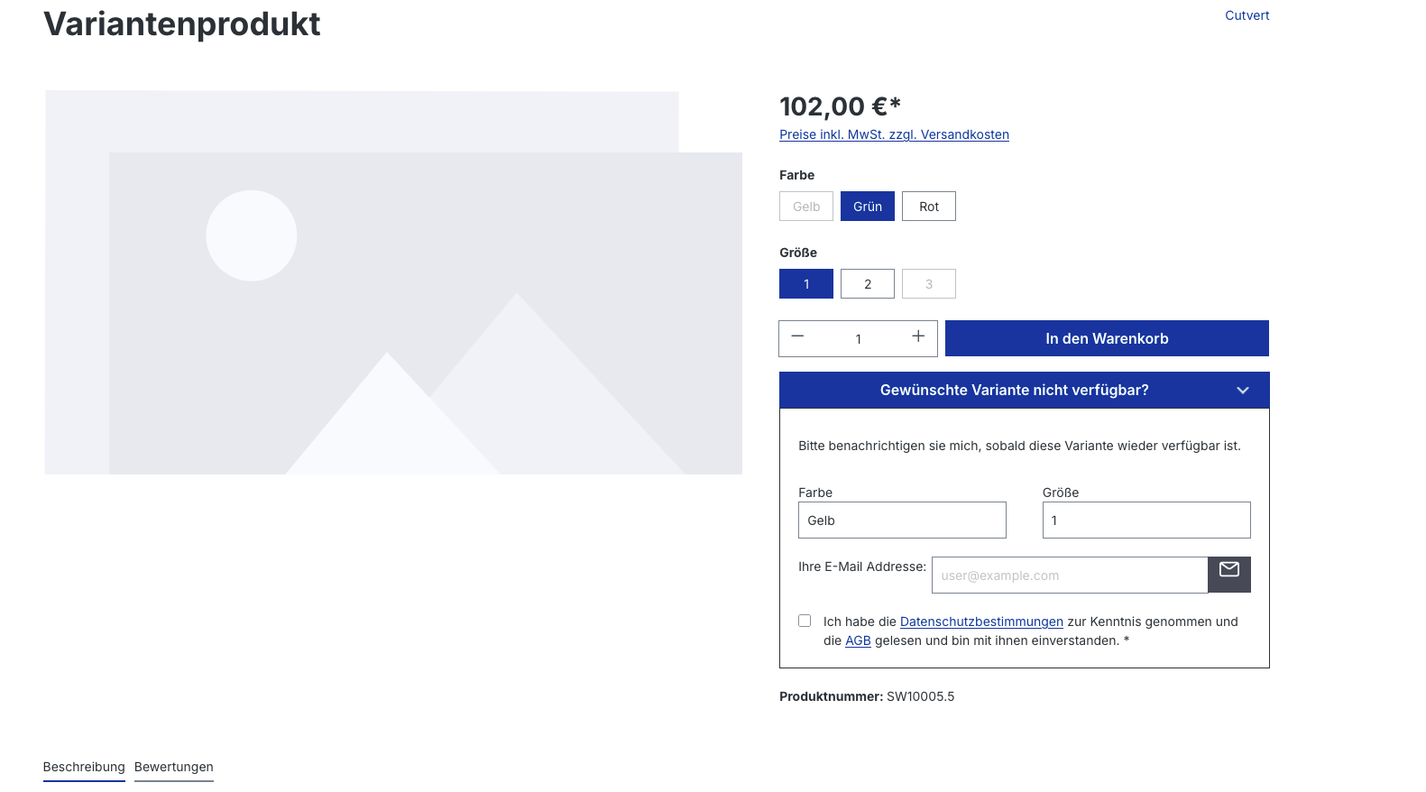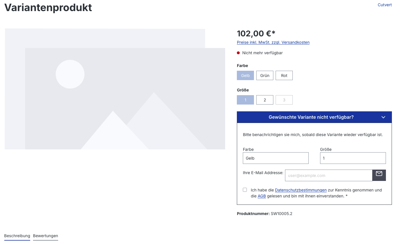 Mit dem E-Mail Benachrichtigungs-Plugin gibt du deinen Kunden die Möglichkeit, sich über die Wiederverfügbarkeit eines ausverkauften Produkts informieren zu lassen. Wenn ein Artikel im Shop nicht mehr verfügbar ist, erscheint automatisch ein Eingabefeld, in dem Kunden ihre E-Mail Adresse hinterlassen können. Sobald der Artikel wieder auf Lager ist, wird automatisch eine Benachrichtigungsmail an die angegebene Mailadresse versendet – einfach, zuverlässig und kundenfreundlich.