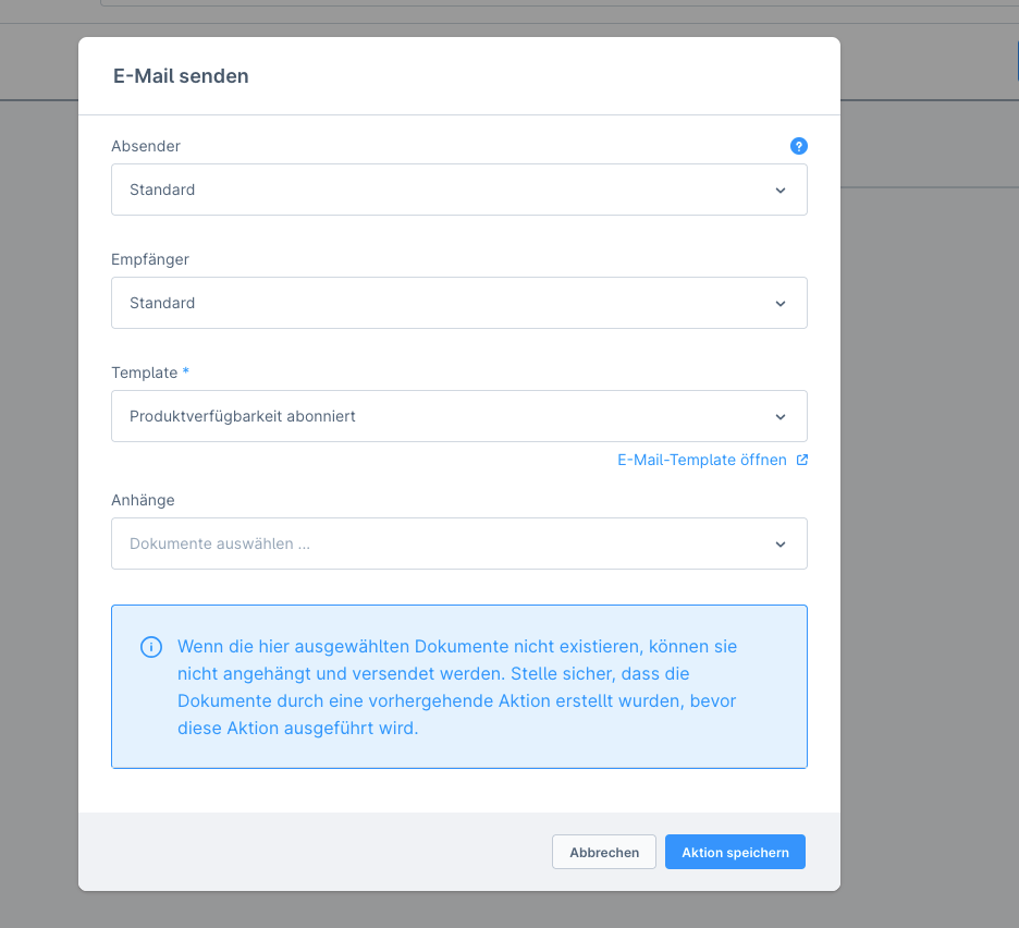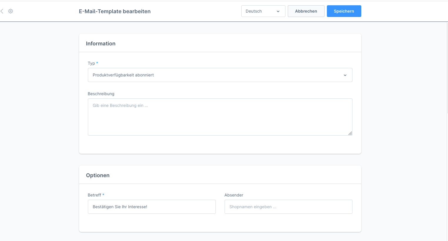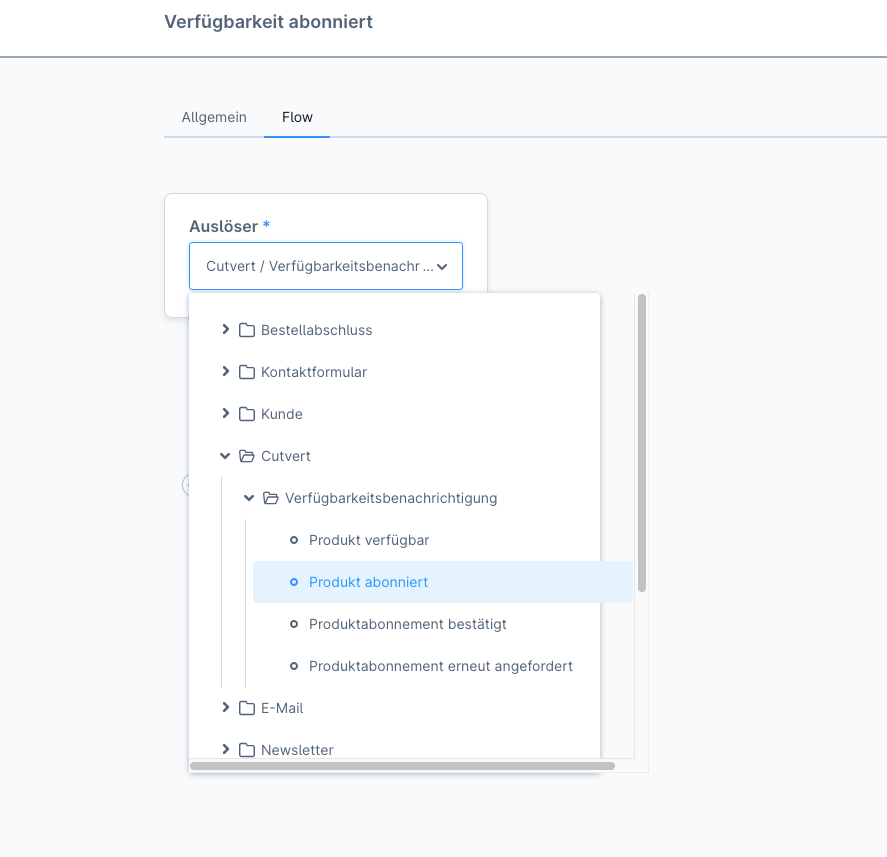 Über den Bereich „Einstellungen -> E-Mail Templates“ lässt sich das E-Mail Design individuell anpassen. Im Flow Builder legst du anschließend fest, wann und wie die Benachrichtigung ausgelöst wird – beispielsweise , sobald ein Produkt wieder verfügbar ist. Damit steuerst du genau, welcher Ablauf beim Versand der Benachrichtigung aktiviert wird.