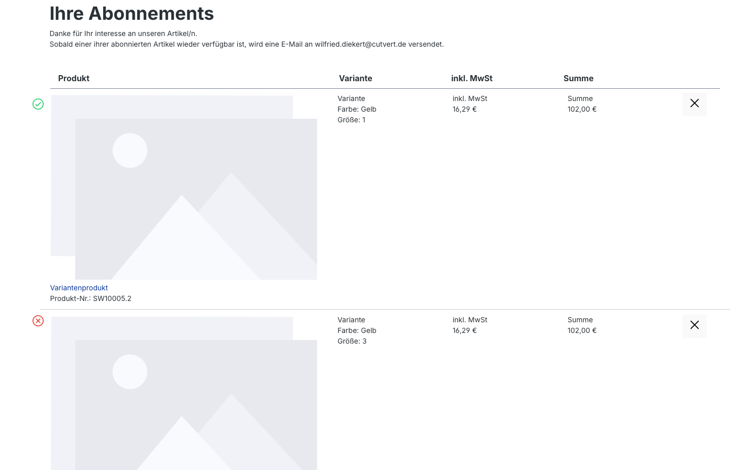 Artikelverfügbarkeit E-Mail Benachrichtigung Plugin